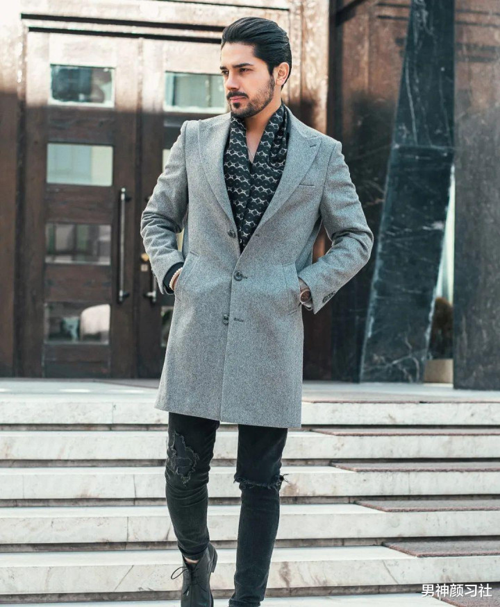 另外,很多男生也会倾向于选灰色大衣,这个外套的确不怎么挑人肤色,还能让你整个人看上去气质特别好。搭配上可以是顺色的,也可以用黑色来做一个冲撞。