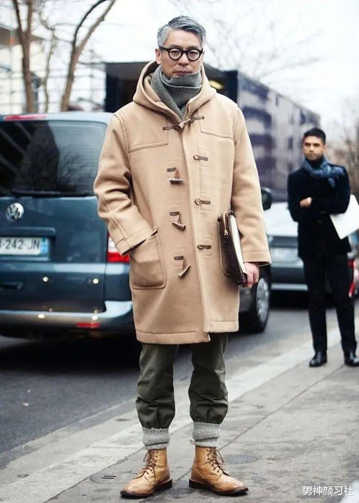 这衣服最厉害的地方是它完全没有年龄限制,无论是20岁还是60岁都可以穿。下面这位看起来非常有精神,和他单品的选择有很大的关系。裤子也非常加分,大地色系把秋冬氛围感拉满了。