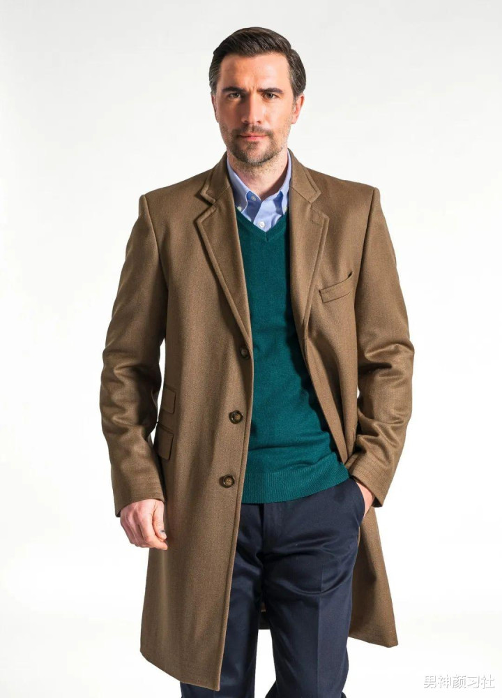 咖色大衣里面也可以加这种绿色毛衣,整体上就很凸显气质。冬天是穿墨绿色的好时候,能让人感受到你很会穿搭,而且也是比较能凸显贵公子气息的。